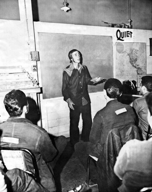 In this rare prison photo Jack Sellner (center) is speaking to inmates on the Narconon Program in the Arizona State Prison. An early graduate of the program when he was released he became the Arizona State Narconon Administrator.