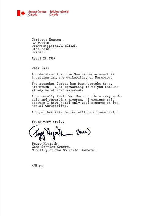 I understand that the Swedish Government is investigating the workability of Narconon.
