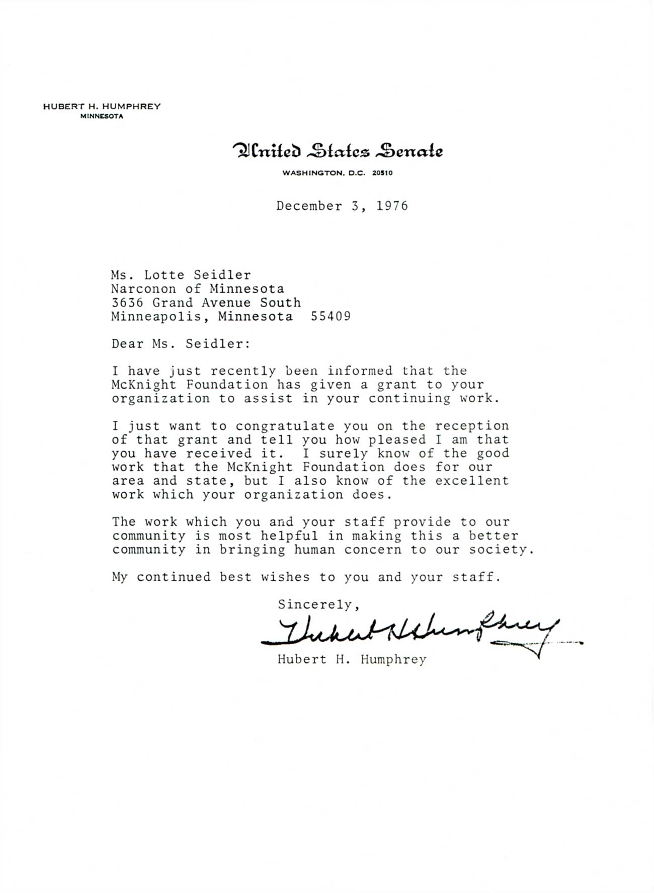 I just want to congratulate you on the reception of that grant and tell you how pleased I am that you have received it. I surely know of the good work that the McKnight Foundation does for our area and state, but I also know of the excellent work which your organization does.