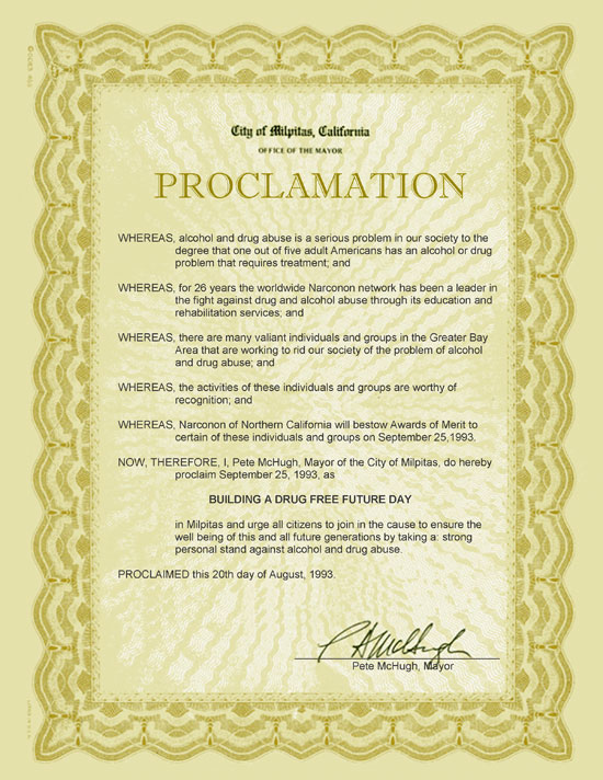 WHEREAS, Narconon of Northern California will bestow Awards of Merit to certain of these individuals and groups on September 25, 1993.