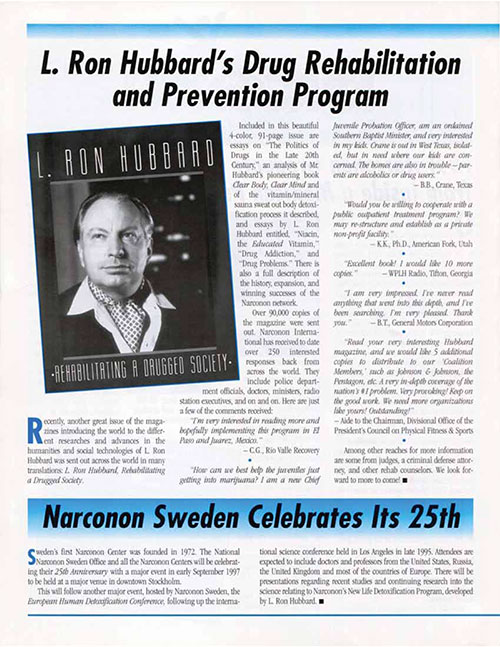 About Narconon Global Mission 50 Years: Saving Lives World-Class Facilities Narconon International Science Advisory Board Recognition & Appreciation Studies & Reports Narconon Editorial Team L. Ron HubbardADDITIONAL INFORMATION